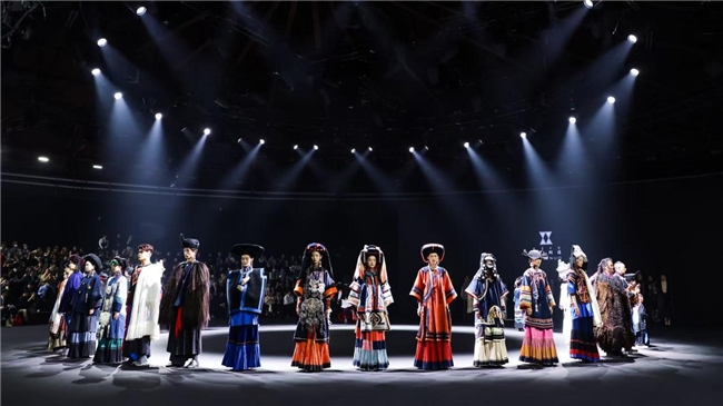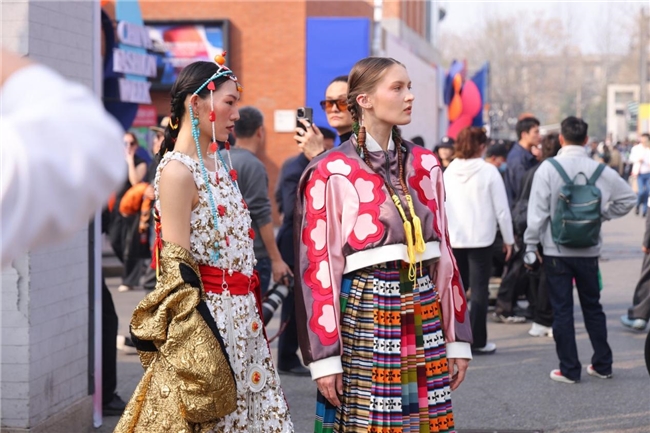 更可贵的是一批扎根大地的设计力量持续生长:设计师林栖将水田衣、马面裙、蓝染、植物染等非遗元素与家乡记忆结合;设计师梁燕深耕大凉山,活化彝绣与银饰;古阿新携手贵州村T,呈现56个民族新娘服饰与国潮男装的碰撞;陶萨、LockFlyDuck、冈仁卓嘎等品牌从草原、新疆、雪域非遗中汲取灵感,打破刻板印象,让传统技艺在当代设计中活态传承。